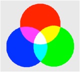 RGB Additiv = zusammenfügen von Einzelfarben zueinander mit dem Ergebnis der Unbuntfarbe Weiss. Beim Mischen von zwei additiven Grundfarben, die aufgestrahlt werden, erhält man als Mischfarbe eine subtraktive Grundfarbe. Werden alle drei additiven Grundfarben zusammen aufgestrahlt, so entsteht weisses Licht. Die Mischfarben der additiven Mischung sind identisch mit den Grundfarben der subtraktiven Farbmischung.
